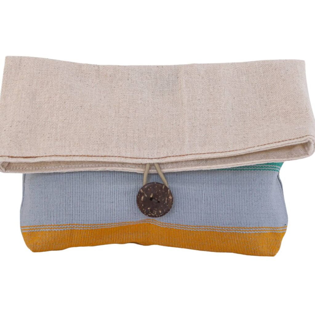 Lleva contigo esta versátil y cómoda bolsa que refleja tu consumo consciente. Cierre con botón de material natural.