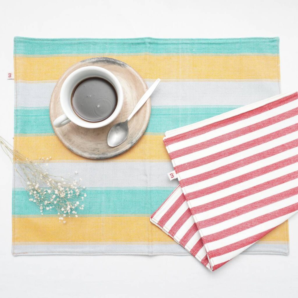 Decora tu mesa con estos coloridos individuales con tejidos B’enam completo en la parte del frente y algodón crudo atrás.